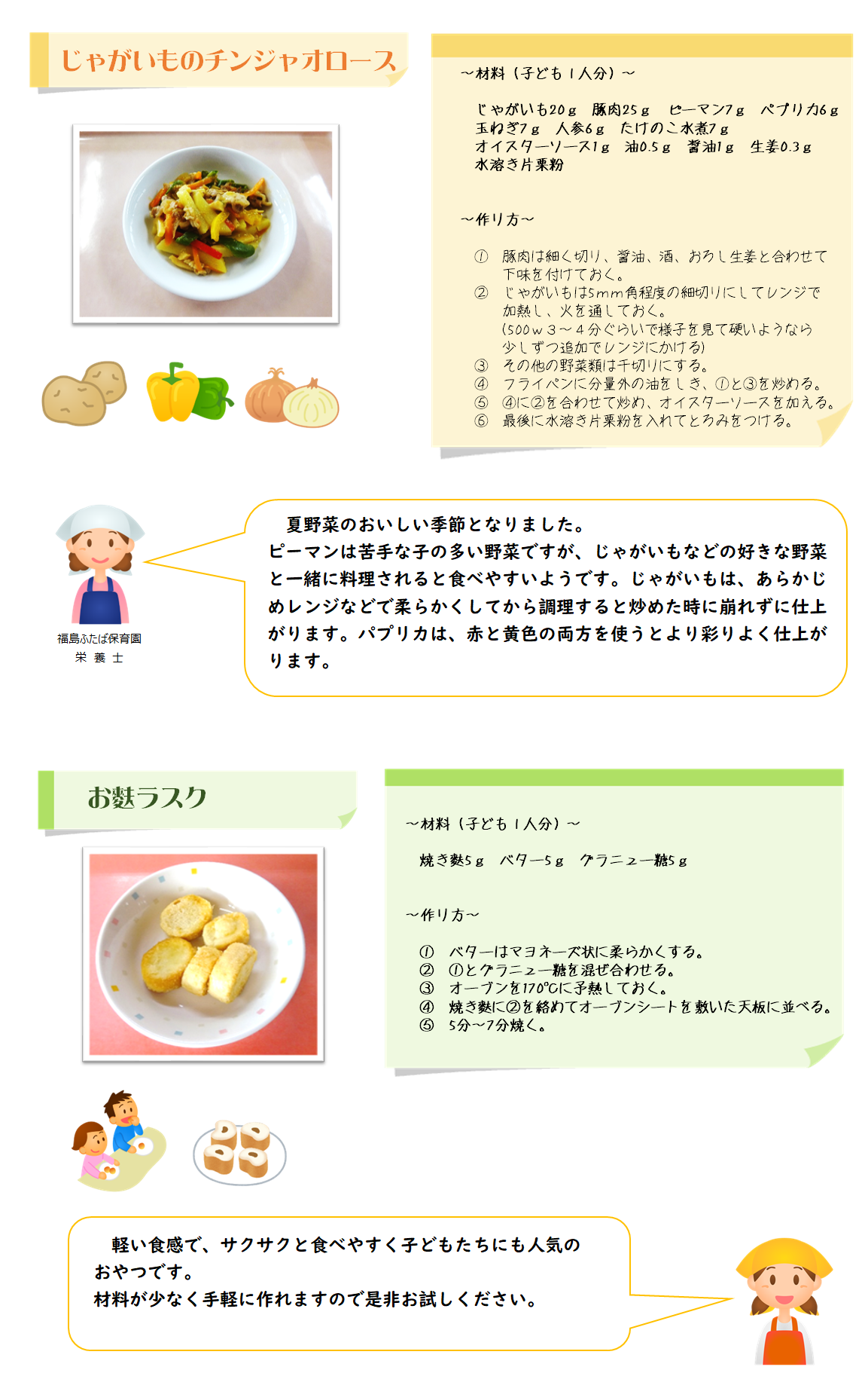 保育所給食メニュー&レシピ紹介:おかあさん だいじょうぶ!(食育情報)令和4年度7月号