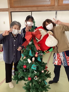 クリスマス気分を味わおうと、クリスマスツリーやリースの飾りつけを行いました。