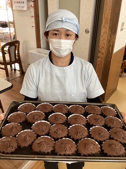 バレンタインのおやつとして、栄養士手作りのチョコレートマフィンを提供しました。