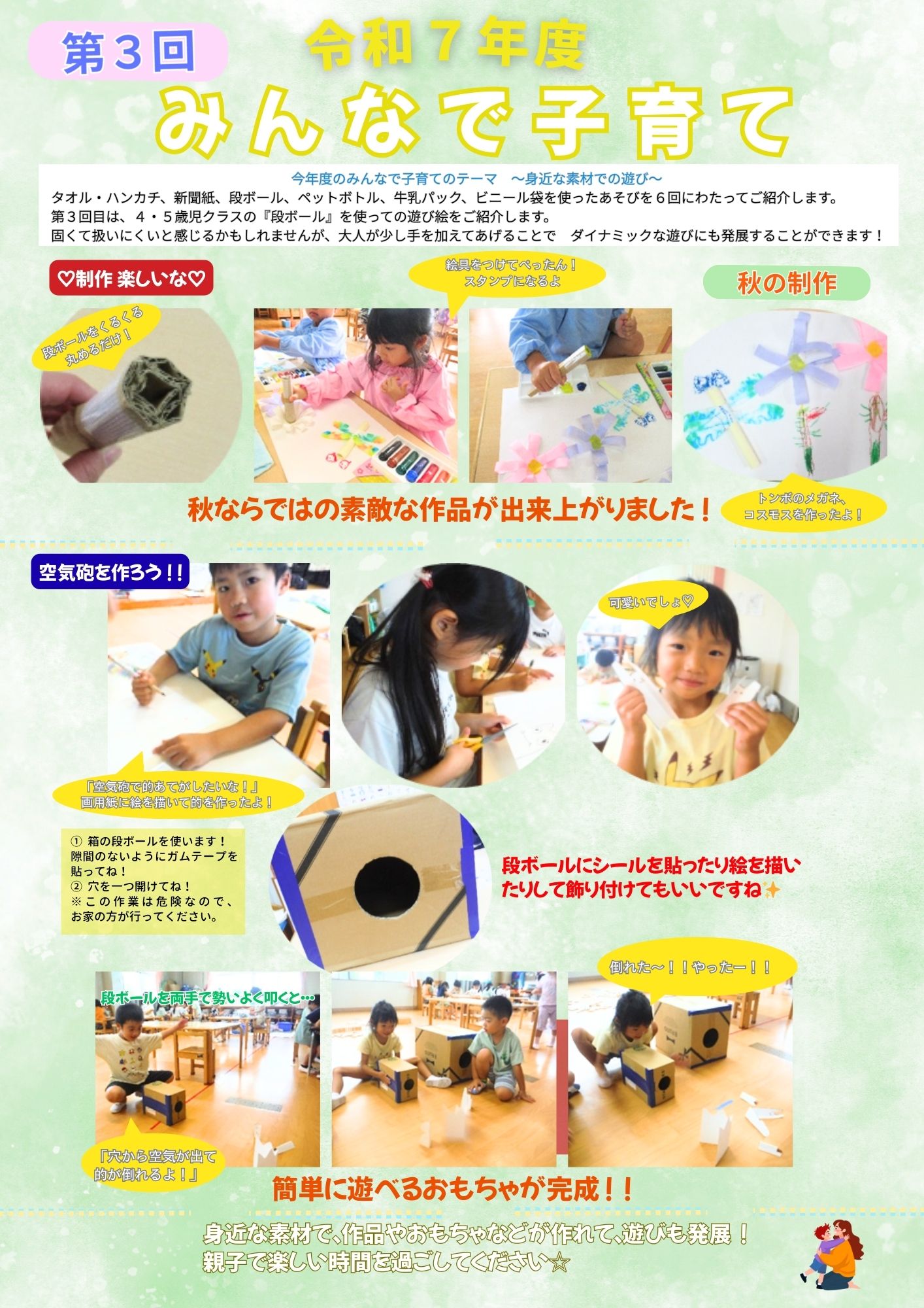 令和7年度9月号 保育所で取り組んでいる身近な素材での遊びを紹介します。