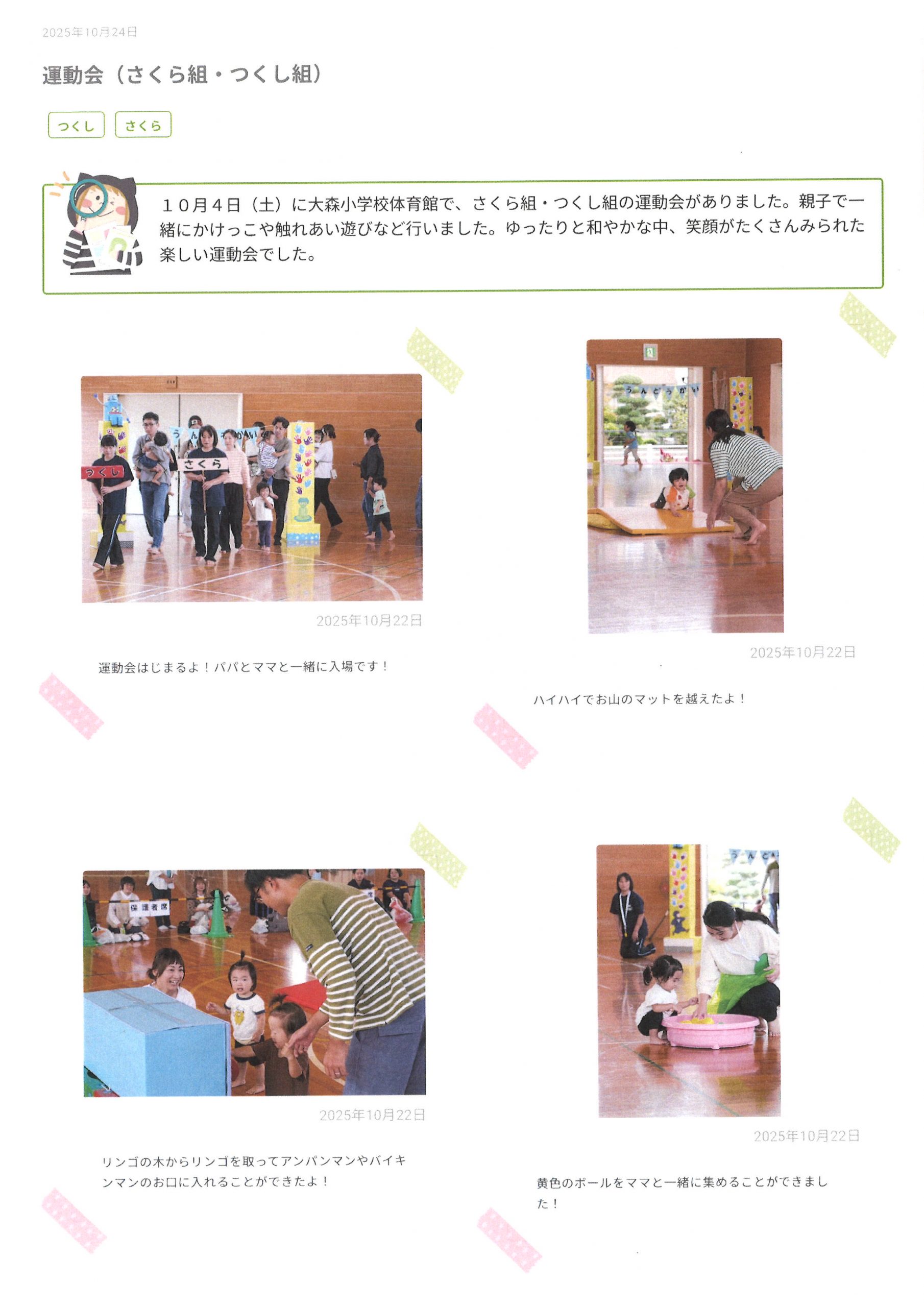 福島ふたば保育園:運動会楽しかったね!さくら組(1歳児)つくし組(0歳児)