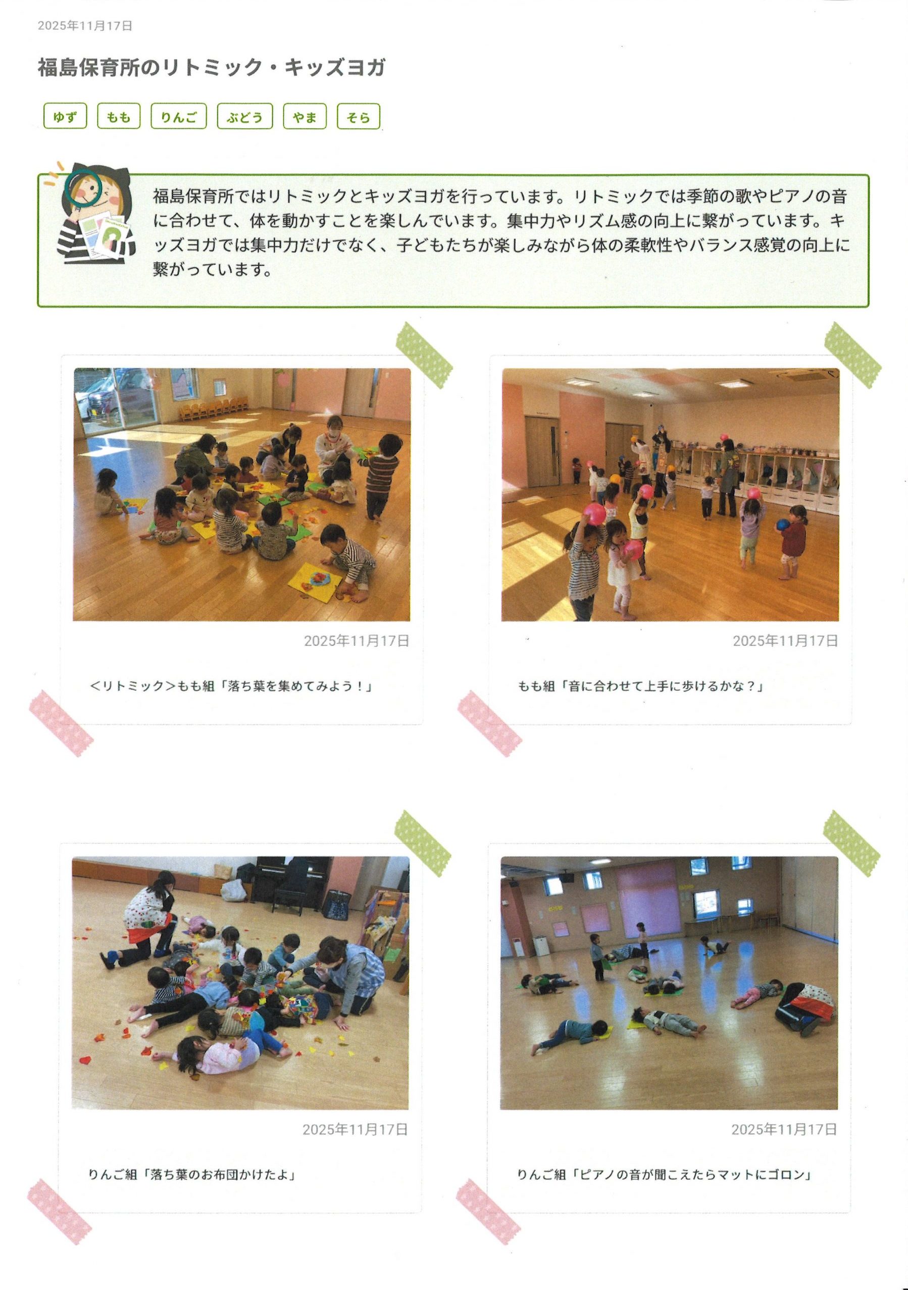 福島保育所:リトミック・キッズヨガ