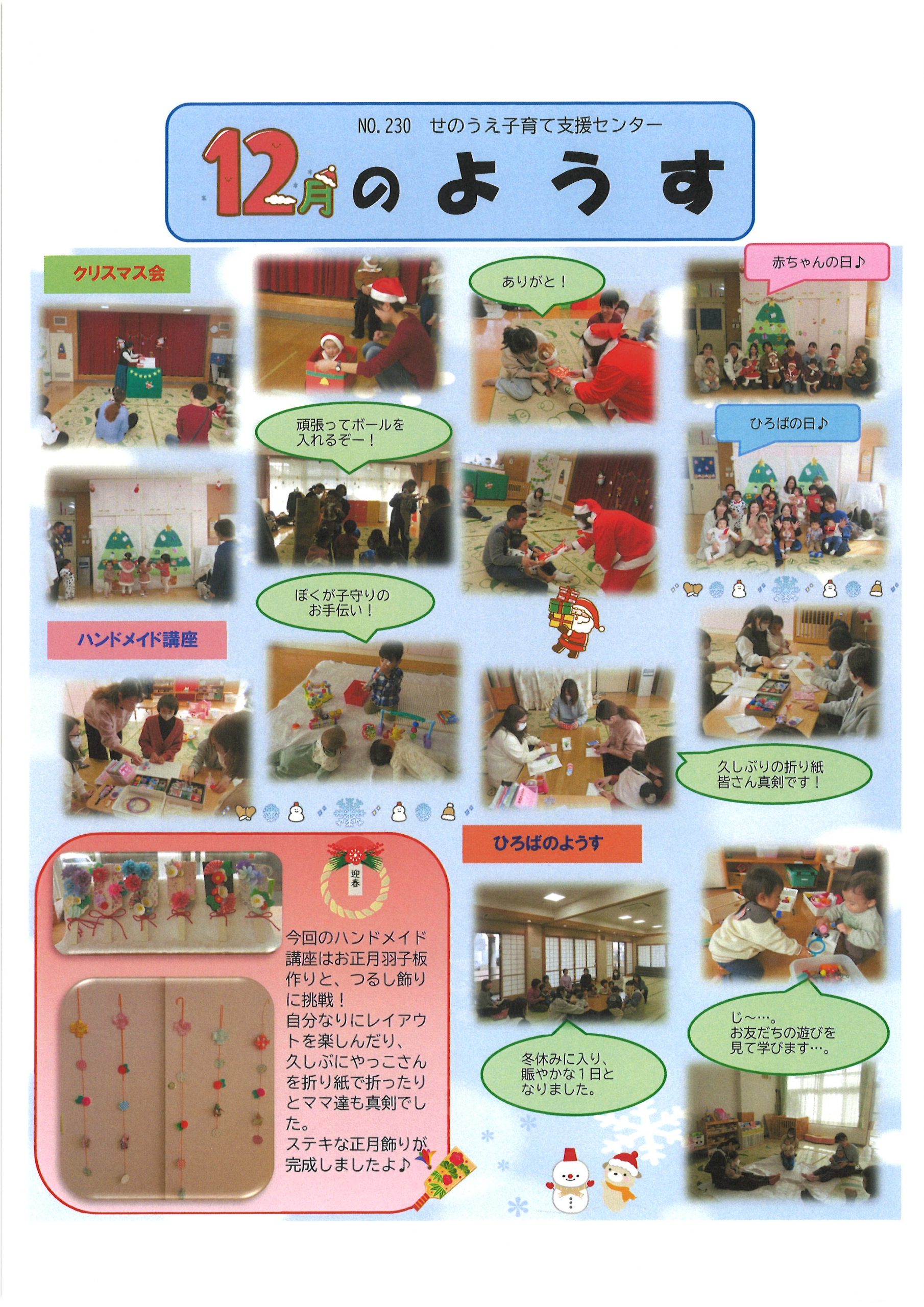 せのうえ子育て支援センター:いちょうひろば1月号 ~12月のようす~