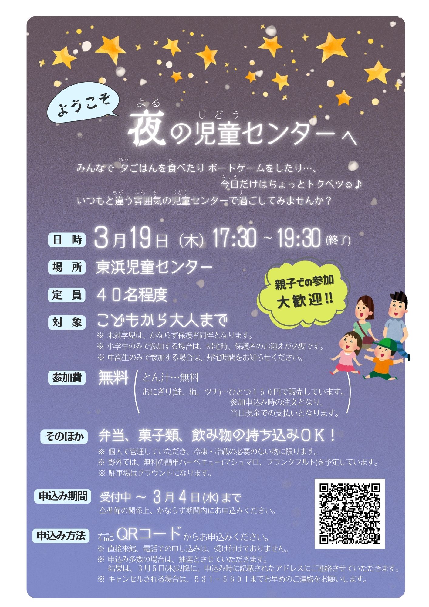 東浜児童センター:ようこそ 夜の児童センターへ(3/19)参加者募集♪