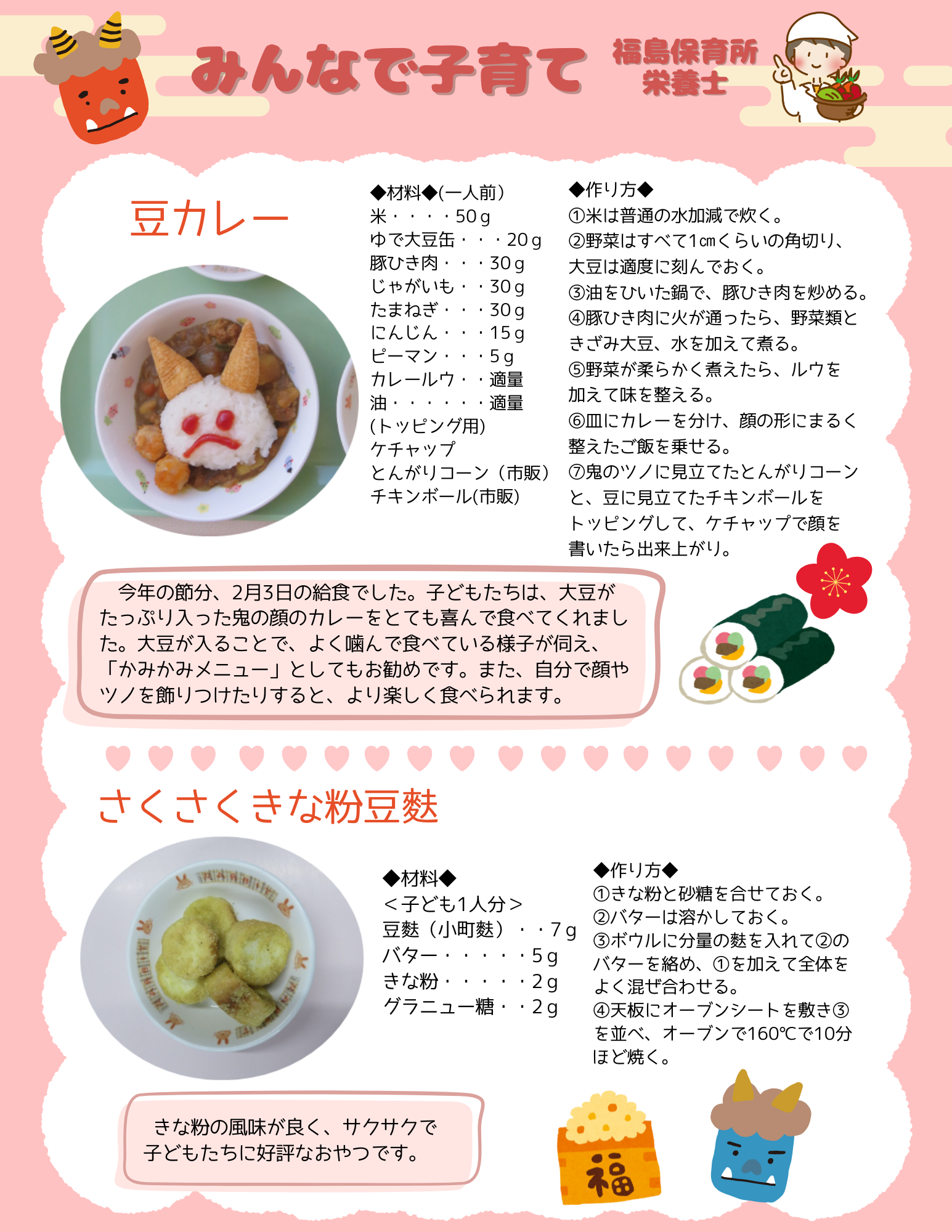 保育所給食メニュー&レシピ紹介:みんなで子育て!(食育情報)令和8年度2月号