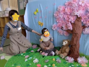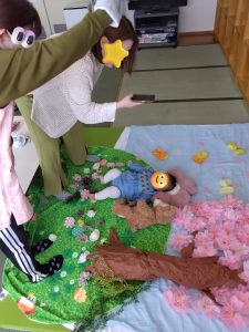 今回のおひるねアートは、春っぽく「森の中のお花見🌸」をイメージしてみました🌳