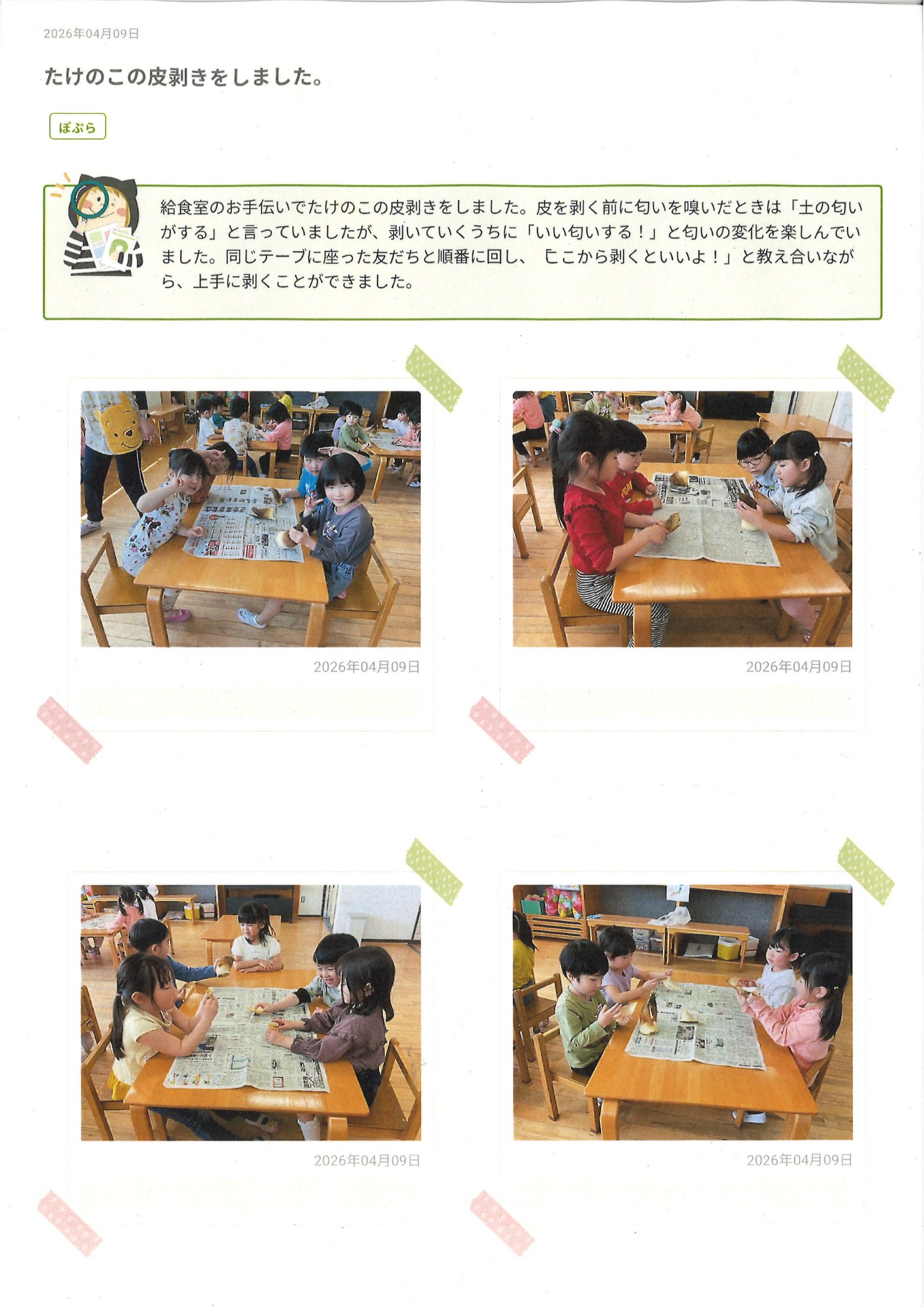 福島隣保館保育所:ぽぷら組でたけのこの皮剝きをしました。