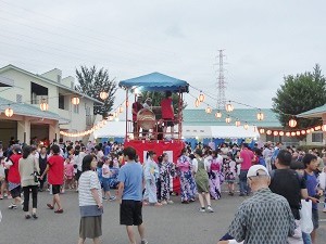 おいしい物を食べた後は全員でひとつの輪を作り、盆踊りを踊りました。