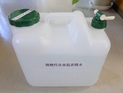 福島市の仁井田町会様より微酸性次亜塩素酸水12リットルをご寄付いただきました。